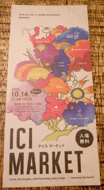 ICI MARKET NEWS イベントの告知です。 10月14日(月)体育の日にHAIR ICI TREにて、一日限りの複合イベントを開催。9つのSHOPが出店します。この面子が揃うのは、中々無いと思います。。。 当日はDJと生演奏によるインストアライブもあるそうです。 FACTORYとDECOも出店しますので、お近くに来た際は、是非遊びに来て下さいね。 それと、最近店内のレイアウト、ディスプレイを変更したのでFACTORYにも遊びに来て下さいね。 それではお待ちしております。 NOZY&YASUI