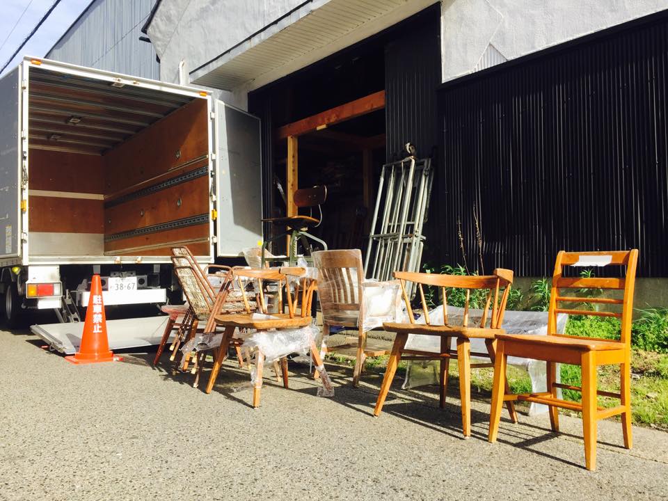 大須のミッドセンチュリーの家具屋さんPalm Springsさんとの混載で、一緒に荷下ろしをしました。