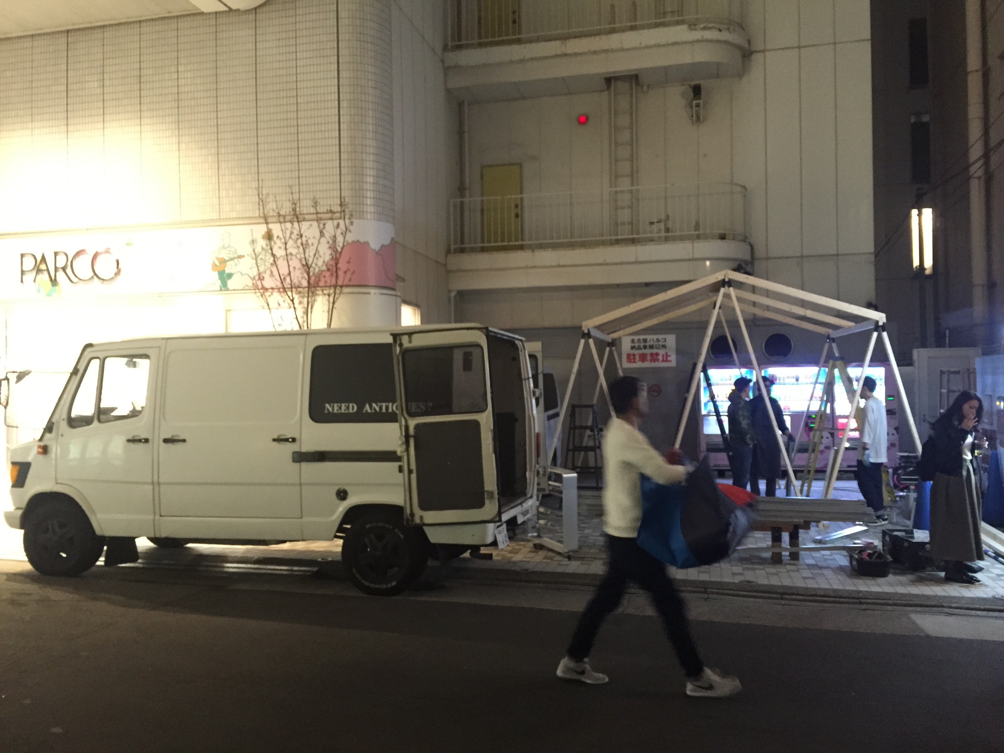 いつもお世話になっているMAISONETTEinc.さんのお誘いで名古屋パルコさんの駐車場で行なわれたTENTOというポップアップストアーに参加させていただき、そのテントの製作をしました。