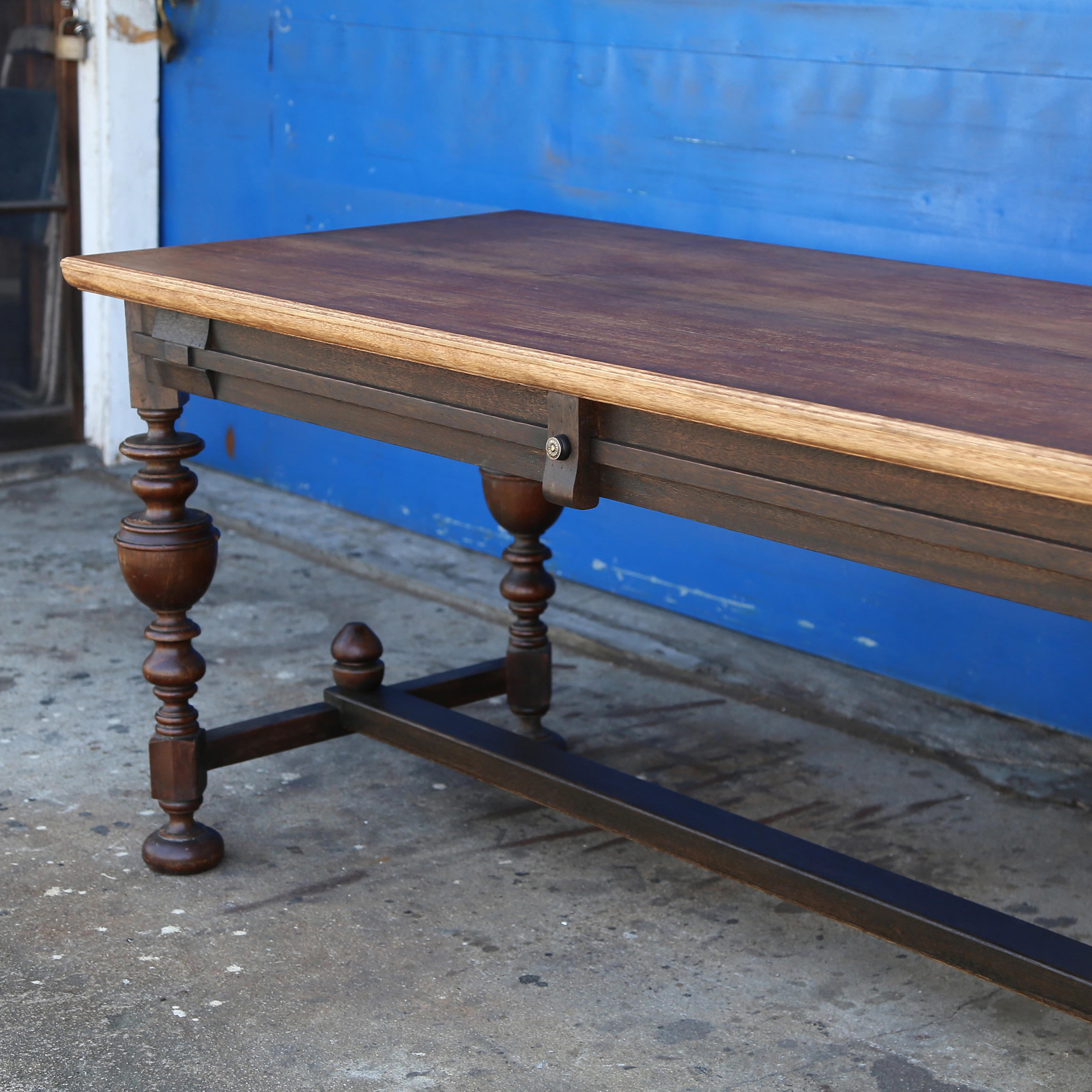 studio truss ONE&ONLYの商品になります。 オブジェのようなアンティークの脚パーツを使用したテーブルになります。 ボリュームのある脚に合うように、幕板に装飾を施しています。 オーダー商品は、デザインやサイズ、材料、仕様などを打合せののち、お見積り、製作をいたします。 店頭、またはメールなどにてお問合せください。