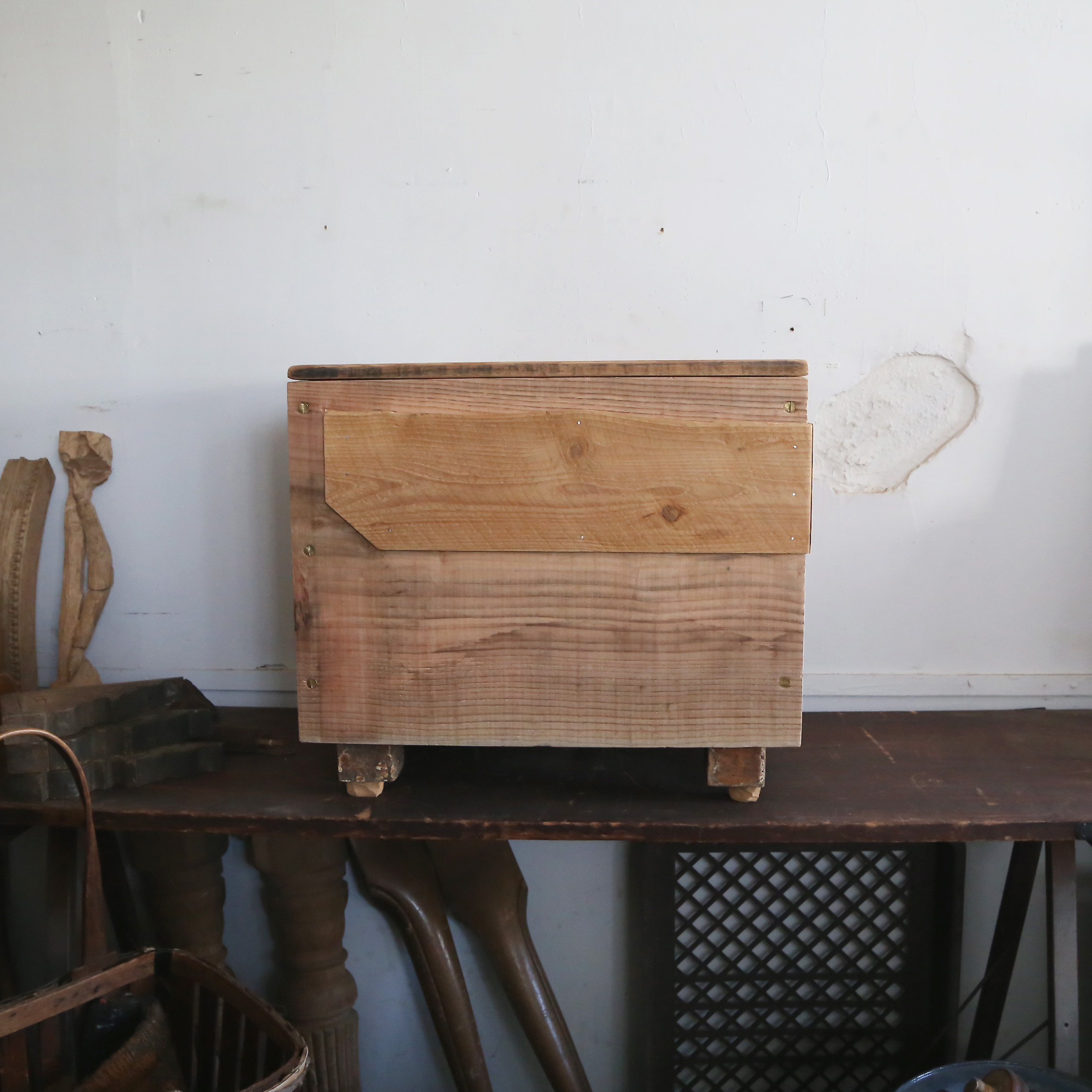 < Back Title: Bench with storage No.:pon-1801-030 Category:Products studio truss ONE&ONLY Size: Price: Made: Age: Description:古材を使用した商品例になります。 デザイン・サイズ・材料・仕様等打ち合わせののち製作となります。 この商品について問い合わせる