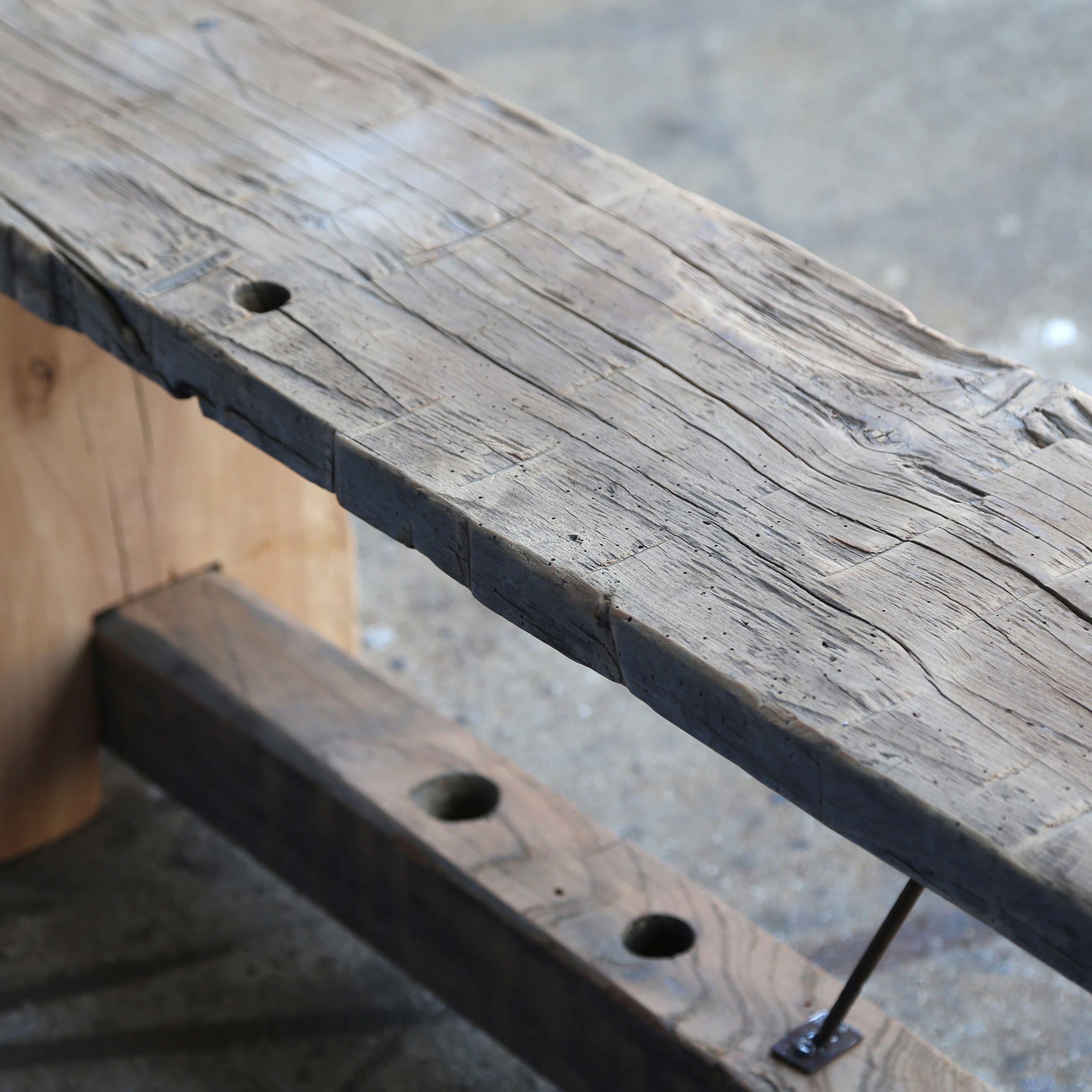 < Back Title: Old timber bench No.:pon-1705-008 Category:Products studio truss ONE&ONLY Size: Price: Made: Age: Description:studio trussの個別オーダー商品になります。 古材の質感をそのまま生かしたベンチになります。 デザイン・サイズ・材料・仕様等打ち合わせののち製作となります。 この商品について問い合わせる